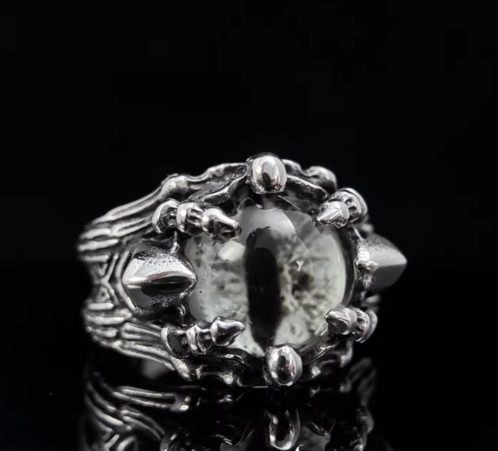 The Abyssal Gaze | Vintage Gothic Dragon Eye Claw Ring